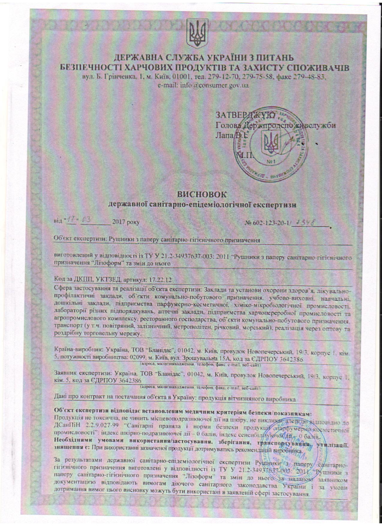 Рушники паперові висновок держ. сан.-епід. експертизи №7348 від 17.03.2017 2стр.jpg