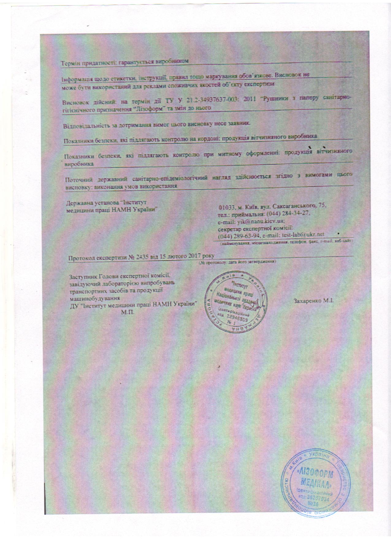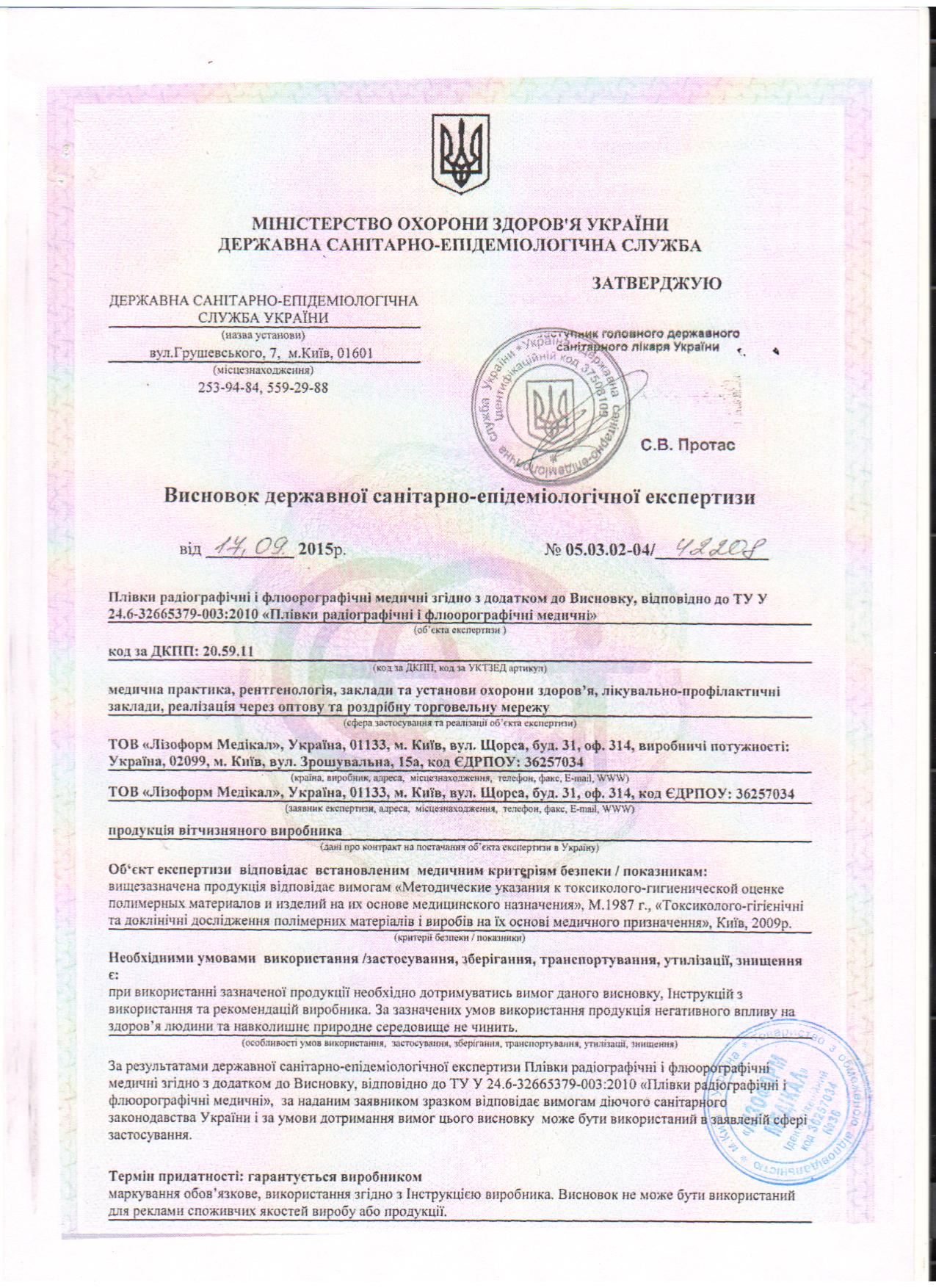 пленка радиографич Висновок сан эпид. эксперт Лизоформ ГИГ №42208 до 30.09.2020 2стр.jpg