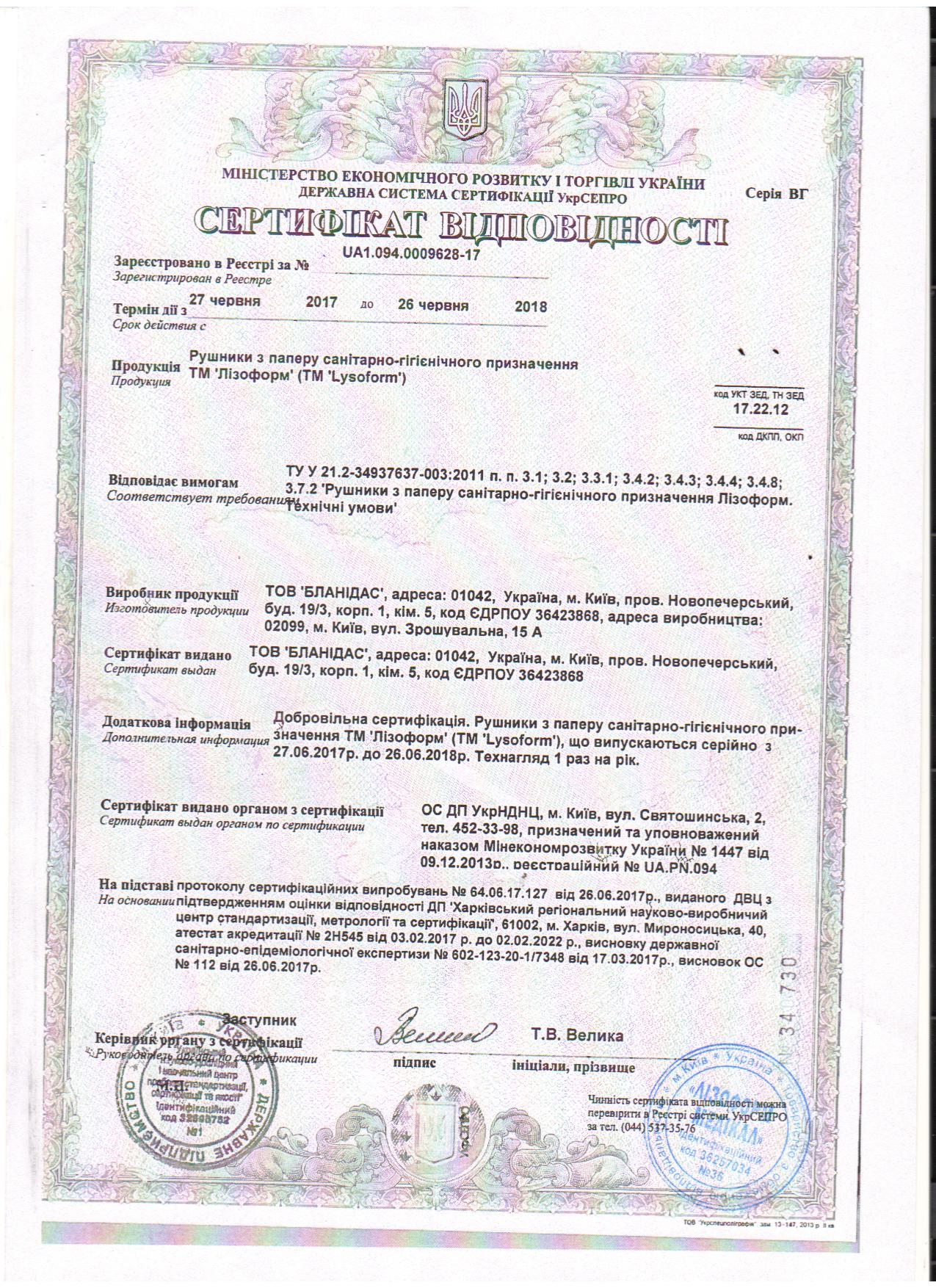 Рушники паперові сертифікат відповідн. до 26.06.2018.jpg
