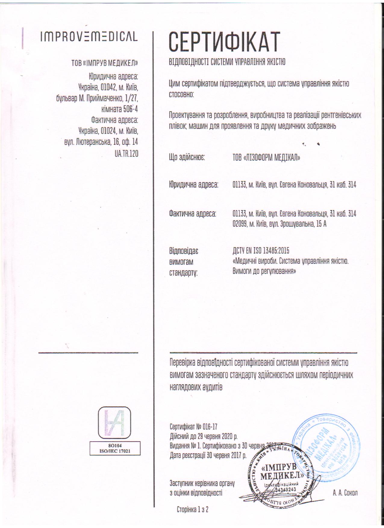 пленка радиографич Сертификат відповідності системи управління якістю №016-17 до 29.06.2020 1стр.jpg