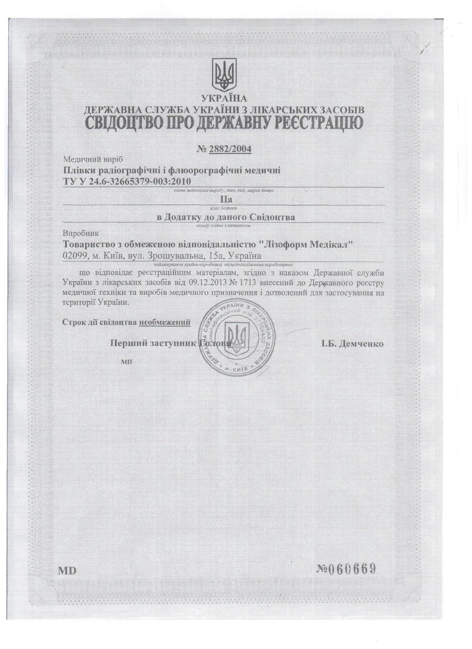 пленка радиографическая Лизоформ св-во про регистр №2882-2004 до ... .jpg