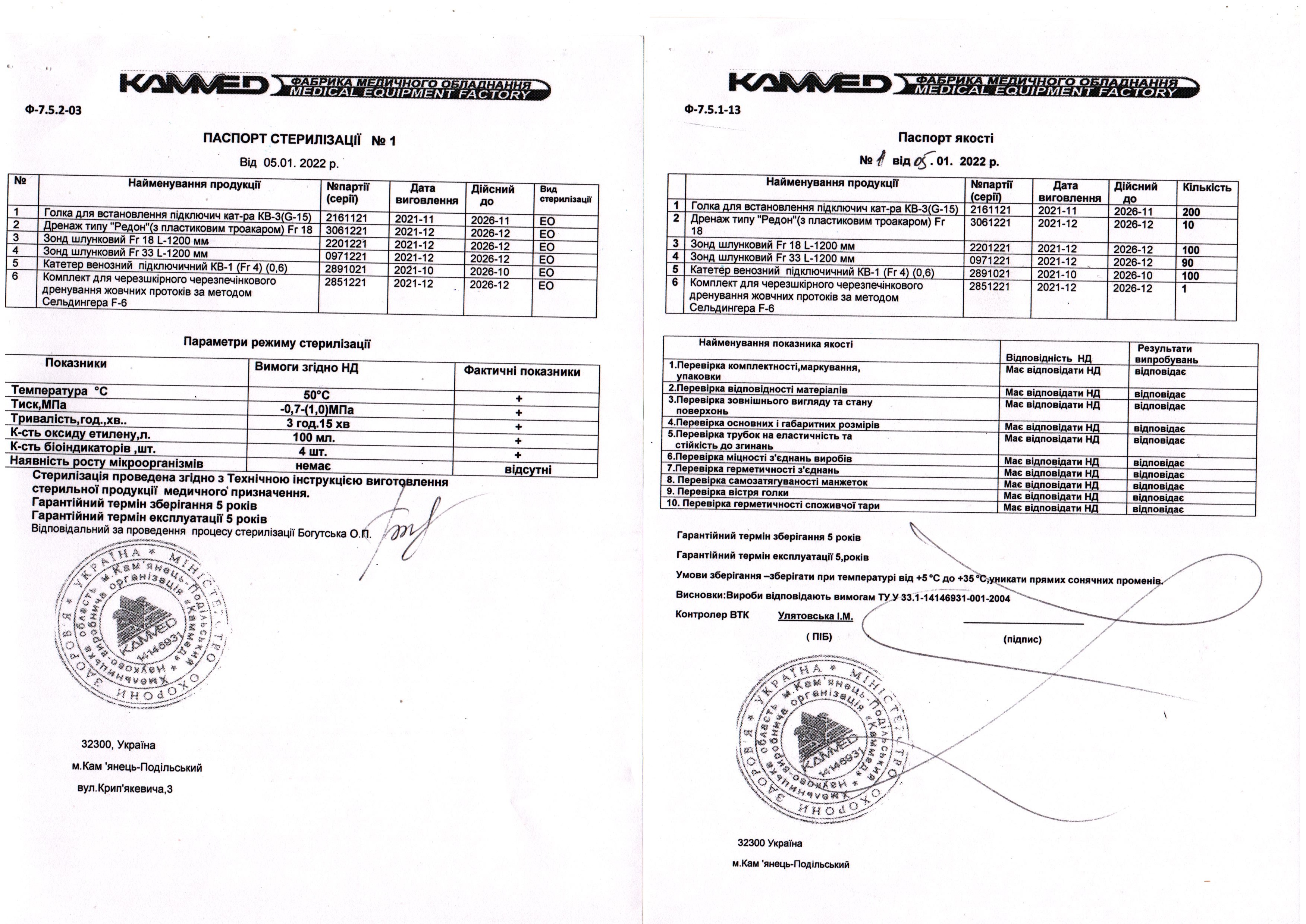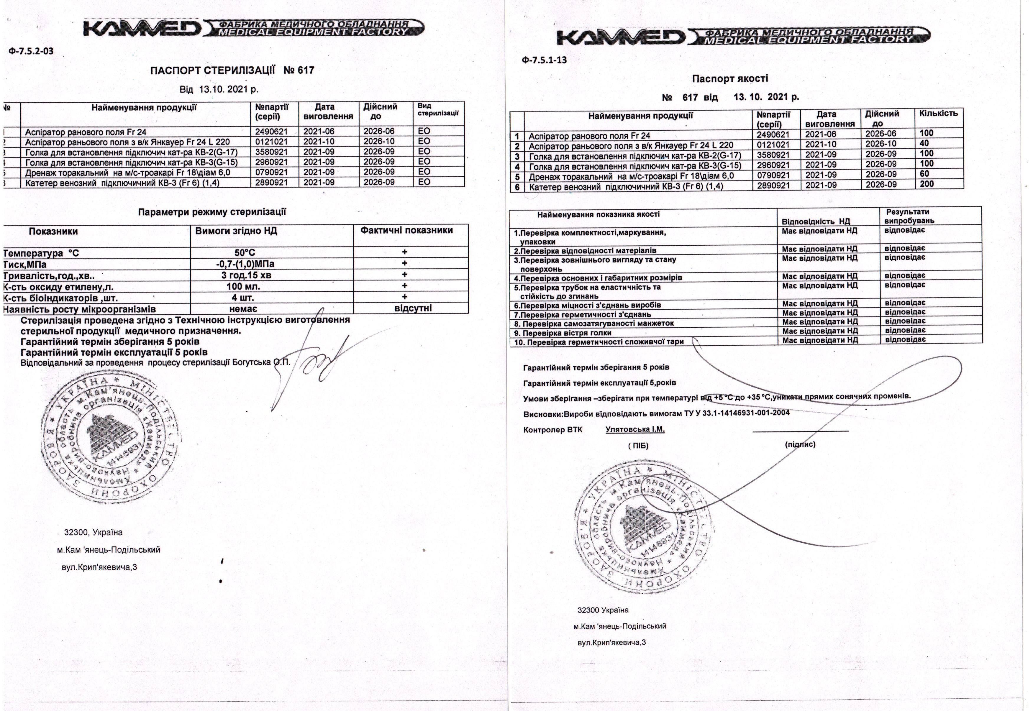 - 3051221 Набір для встановлення центрального венозного катетера (однокан., поліуретановий) Fr6 Каммед.jpg
